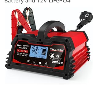 Cargador de batería inteligente Yinleader BC-400 Pro en color rojo. Voltaje: Funciona con baterías de 12V y 24V, con selección automática. Corriente de salida: Ofrece 10A/20A/40A para 12V y 5A/10A/20A para 24V. Compatibilidad: Compatible con varios tipos de baterías, incluyendo plomo-ácido, AGM, GEL y LiFePO4. Funciones: Cuenta con modos de selección de corriente, selección de tipo de batería y modo de reparación. Certificaciones: Posee certificaciones FCC, CE, UKCA y RoHS. Coche, camiones, furgonetas, moto