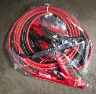 Pinzas de batería para coche, también conocidas como cables de arranque. Son de color naranja y vienen en un estuche. - Pinzas de alta calidad. - Cable de arranque resistente. - Incluye estuche para guardarlas.