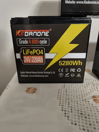 Tres baterías de litio KEDANONE modelo LiFePO4. - Capacidad: 24V 220Ah. - Energía: 5280Wh. - Ciclos: Grado A 8000. - Certificaciones: CE, FC, RoHS. - Para autocaravanas y placas solares. - PRECIO POR UNIDAD - Posibilidad de negociar el precio por las 3