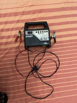 Cargador de batería START GT16 con pinzas. - Incluye pinzas de conexión. - Diseño portátil con asa. - Indicadores luminosos.