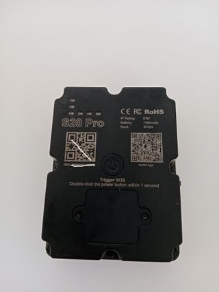 Localizador GPS S20 Pro en color negro. - Localización mundial con SIM incorporada. - Batería de larga duración (Más de 120 días, 7500mAh). - Diseño compacto y discreto. - Puerto de carga USB. - Aplicación móvil configurable con alertas de movimiento y velocidad. - Botón de alarma. - 4 Imanes de sujeción - Resistente al agua y el polvo (IP67)