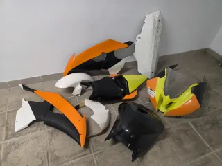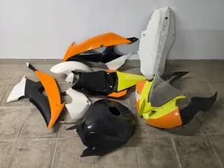 Conjunto de carenados de circuito Speed-fiber para Yamaha R6R del año 2008. Roces y grietas normales del uso. La placa del asiento tiene espuma foam y se puede desmontar para acceder a la bateria. Se incluye tornillería rápida. - Carenado frontal. - Cúpula. - Paneles laterales. - Colín. - Depósito.