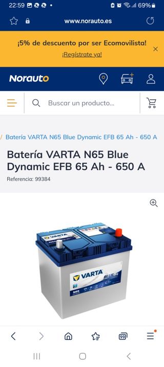 Bateria Varta N65 blue Dinamic star/stop EFB 65 Ah 650A. Caja D23 NUEVA sin usar PRECINTADA. Comprada por error. Precio en Norauto 171€