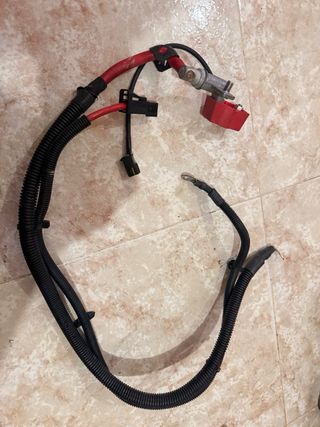 Cable de batería positivo para BMW E93 Cabrio. - Cable positivo con funda protectora negra. - Conector para airbag. - Terminal de batería con tapa roja.