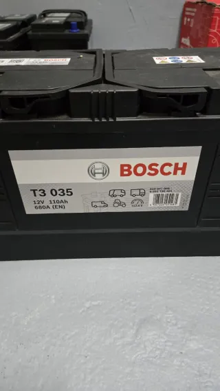 Batería de coche marca Bosch, modelo T3 035. - Nueva. - Voltaje: 12V - Capacidad: 110Ah - Corriente de arranque en frío (EN): 680A