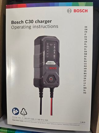 Cargador de batería Bosch C30 para automóviles. Incluye manual de instrucciones. - Modelo: C30 - Marca: Bosch - Incluye manual de instrucciones