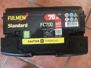Batería de coche Fulmen FC700 en buenas condiciones comprobadas y mirada con máquina de diagnosis lista para su uso. 12V. 70AH 640A(EN) 55€. MARCA:FLUMEN Se hace un descuento si se entrega batería vieja de 5€ 620254527 llamar sin compromiso. - Capacidad: 70 Ah - Corriente de arranque en frío (CCA): 640 A (EN) - Voltaje: 12V - Modelo: FC700 - Marca: Fulmen - Tipo: Standard