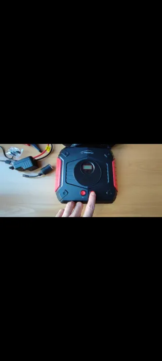 Arrancador de baterías portátil para coche de la marca YABER. Incluye su funda de transporte. NO FUNCIONA. Esta Nuevo. Dejo de funcionar de la noche a la mañana. Nunca se llegó a usar. Ideal para manitas o técnico en reparaciones eléctricas. Capacity: 24800mAh Output 1: 5V 2.4A/ 9V 2A/ 12V 2A Output 2: 5V 2.1A DC Output: 12V-16.8V 3A DC Input: 5V 2A/ 9V 2A Tiene bomba eléctrica para hinchar las ruedas, balones, bicicletas, etc con sus boquillas. - Diseño compacto y robusto. - Pinzas de conexión rojas y negras.