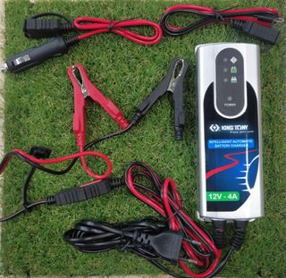 Cargador mantenedor de baterías King Tony,3 años de garantía, somos tienda física en Cáceres. Aislado agua y polvo. Equiv. IP65| Suministrado con pinzas de cocodrilo. Dispone de un regulador que permite dejar la batería en carga permanentemente, sin riesgo de deterioro de la batería. Cargador de batería : 7Ah ~ 120Ah Tiempo de carga máx. : 30h Cargador de mantenimiento : 7Ah ~ 160Ah Peso (g) : 580
