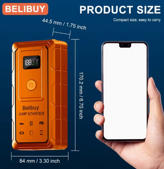 Arrancador de batería portátil de 6000A. - Incluye pinzas de conexión. - Pantalla digital. - Cable de carga USB.