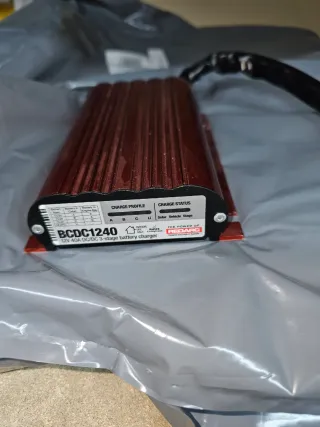 Cargador de batería Redarc BCDC1240 de 12V y 40A, con tecnología DC/DC de 3 etapas. Poco uso. - Modelo: BCDC1240 - Voltaje: 12V - Amperaje: 40A - Tipo de carga: DC/DC 3 etapas - Indicadores de perfil de carga y estado de carga.
