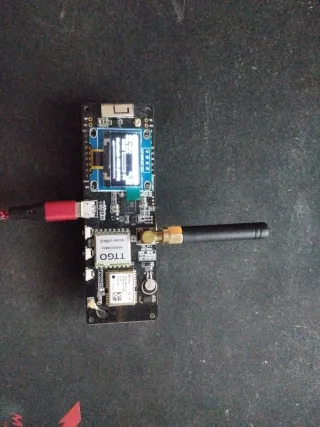 Placa de desarrollo con microcontrolador, ESP32 con GPS, wifi y módulo LoRa. - Pantalla LCD integrada. - Conector para antena. - Puerto USB para alimentación y bateria