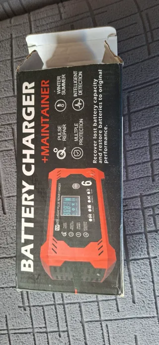 Cargador de baterías inteligente para vehículos de 12V con función de mantenimiento. - Capacidad de carga de 6A. - Pantalla digital para visualización del estado. - Modos de carga: Invierno, Verano, Reparación. - Múltiples protecciones integradas. - Detección inteligente de la batería.