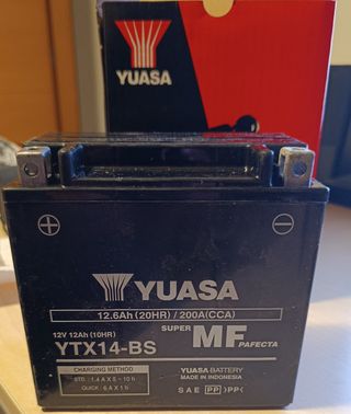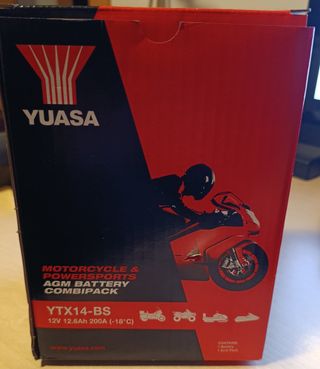 Completamente nueva, no la he podido instalar porque he calculado mal el ancho y no cabe Batería de moto YUASA YTX14-BS para motocicleta y powersports. - Modelo: YTX14-BS - Voltaje: 12V - Capacidad: 12.6Ah - Corriente de arranque en frío (CCA): 200A (-18°C)