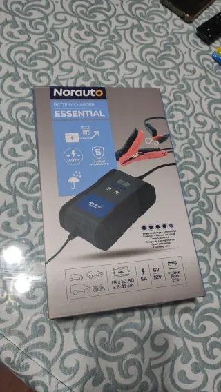 SIN ENTRENAR. Cargador de batería Norauto Essential con pinzas para coche. - Carga automática. - Garantía de 5 años. - Apto para baterías de 6V y 12V. - Compatible con baterías Plomo, AGM y EFB. - Dimensiones: 19 x 10.80 x 6.41 cm. Hago envíos.