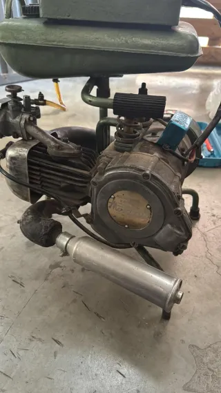 Motor de moto Mosquito adaptado como generador y cargador de batería. En funcionamiento. arranca a las primera. - Unidad de generación de energía. - Incluye motor Mosquito.