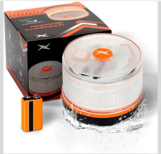 Baliza de seguridad LED para emergencias, también conocida como luz V-16. Compacta y fácil de usar. - Tamaño: 9 x 4.5 cm - Peso: 94 g - Batería: 3 AAA - Voltaje: 4.5 V - Potencia: 3 W - Incluye 1 luz blanca, 8 luces rojas y 5 luces naranjas. - Ofrece 5 patrones de iluminación. - Tal y como se ve en las fotos ( Pilas no incluidas)