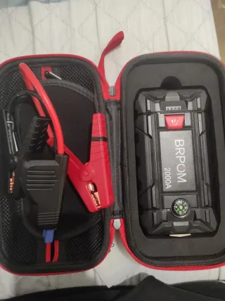 Arrancador de baterías portátil con pinzas rojas y negras. - Incluye cables de arranque. - Diseño compacto y resistente. - Brújula integrada. No se hacen envíos La venda en persona