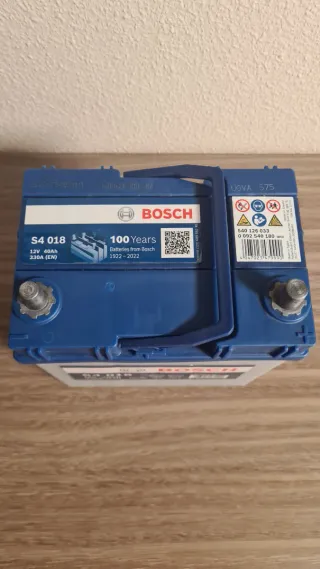 Batería de coche marca Bosch, modelo S4 018. La batería está sin estrenar, fecha de compra 9/12/2025 - Voltaje: 12V - Capacidad: 40Ah - Corriente de arranque en frío (EN): 330A