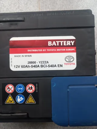 Batería de coche Toyota con especificaciones 12V, 60Ah y 540A. Fabricada en España. - Modelo: 28800-YZZZA - Potencia en frío (CCA): 540A