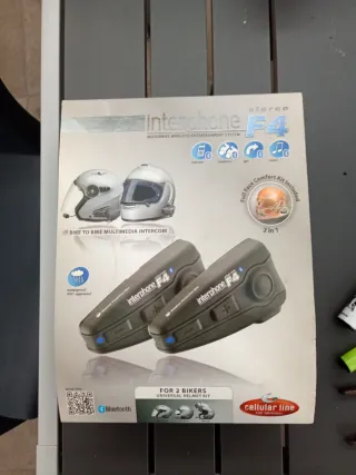 Sistema de comunicación para motoristas Interphone F4. Son nuevos sin estrenar cargan pero no logro encenderlos, no sé si será batería o que es , ideal para reparar o para accesorios - Kit para 2 motoristas. - Intercomunicador bike to bike. - Sistema de entretenimiento multimedia. - Resistente al agua (IP67). - Conectividad Bluetooth.