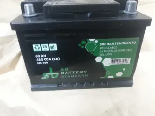 Batería de coche marca Standard, modelo 60Ah. - nueva,tan solo un dia de uso - Reciclable. - 24 meses de garantía sellada. Medidas:17,5cm alto 24,5cm largo 17,5cm ancho