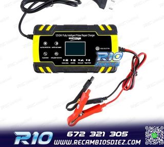 Móvil: 672 321 305 - Referencia: RLC026032. CARGADOR BATERIA 12V 8A Control por microprocesador (CPU) Carga Automática inteligente: Se trata de un cargador de batería totalmente automático La carga automática protege tu batería de sobrecargar. Así que puedes dejar el cargador conectado a la batería indefinidamente. Los cargadores son adecuados para la mayoría de los tipos de baterías, incluyendo calcio, Gel y AGM, baterías húmedas. También pueden ayudar a restaurar las baterías drenadas y sulfatadas. Tipos de baterías: La mayoría de los tipos de baterías de plomo-ácido incluy