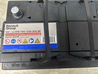 Batería de coche Renault Group, modelo EFB de 70Ah y 720A (EN). NUEVA SIN USAR - Tecnología Enhanced Flooded Battery. - Referencia: 24410 3441R. - Fabricada en España. - Fecha de fabricación: 13.12.25.