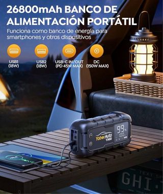 Inflador de aire portátil para coche de la marca Varo nuevo, comodo y fácil de transportar. Su presión máxima es de 10.3 bar/150 psi. Sirve para inflar ruedas de coche, bicicleta, moto, pelotas, etc. Su batería es recargable a través de cable USB, su voltaje es de 8V y tiene una capacidad de 2000 mAh. Incluye un cable USB y una bolsita para guardarlo