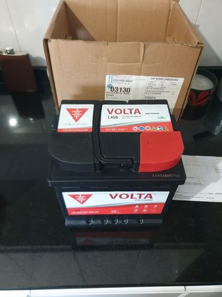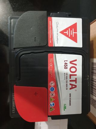 Batería de coche VOLTA L450, nueva y en perfecto estado. Es de abril de 2025 - Voltaje: 12V - Capacidad: 45Ah - Corriente de arranque en frío (CCA): 360A - Modelo: L450 - Marca: VOLTA - Serie: STANDARD
