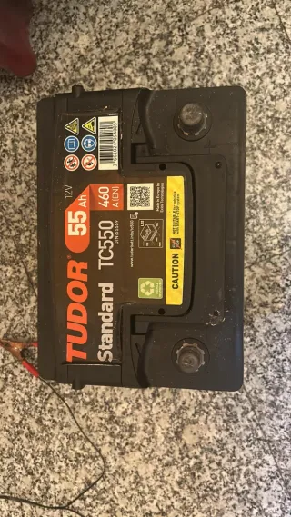 Batería de coche Tudor TC550 de 55Ah y 460A. - Voltaje: 12V - Capacidad: 55 Ah - Corriente de arranque en frío (EN): 460 A - Modelo: TC550 - Fabricada en Europa por Exide Technologies.