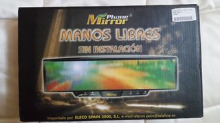 Espejo retrovisor manos libres sin instalación. Nuevo (sin usar). En su caja original con instrucciones y componentes. Graba y reproduce mensajes. Indicador de batería. Volumen. Puede usarse con todos los coches y con todo tipo de móviles. Gastos de envío a cargo del comprador.