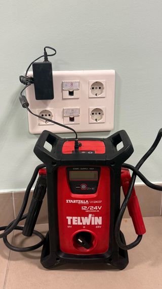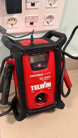 Arrancador de baterías Telwin modelo Startzilla. - Voltaje: 12/24V. - Corriente de pico: 12000A. - Pantalla digital. - Indicadores LED de estado. - Luz auxiliar Perfecto para arrancar cualquier tipo de vehiculo Usado muy pocas veces Negociable