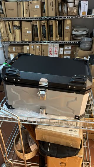 Baúl moto aluminio 65L gris y negro 2 cascos nuevo
