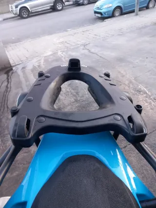 Soporte baúl maletero parrilla, color negro, con todos sus tornillos y barras laterales, en perfectas condiciones. Estaba instalado pertectamente en una moto Yamaha Xj6, pero creo que sirve a otras motos también además por ser ajustables la posición de los fijadores de los "brazos". * Regalo el baúl con sus llaves para 2 cascos integrales. Se tendría que hacer en otro envío si es a distancia.