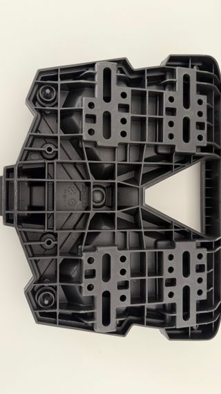 Parrilla de soporte para baúl o top case de Yamaha. Fabricada en plástico negro resistente. - Diseño robusto con múltiples orificios. - Compatible con modelos Yamaha.