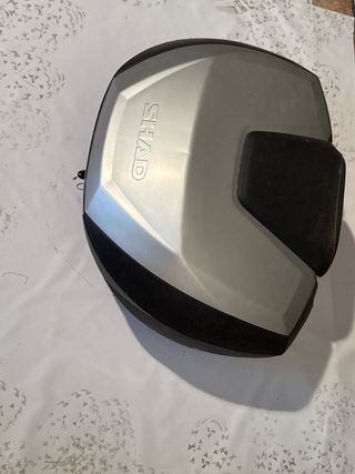 Baúl SHAD SH48 con marcas superficiales. Amplia la capacidad, caben dos cascos integrales. Incluye respaldo para el pasajero. Las "manchas" son porque lo he lavado al subir el anuncio y se estaba secando todavía. Tiene un problema con la cerradura, ya que al apretarla se abre el baúl, no sé si es porque está mal colocada o porque necesita cambiarse. De ahí su precio. Lo vendo porque compré una moto que lo incluía, pero he tenido que quitarlo por espacio para aparcar en el garaje.