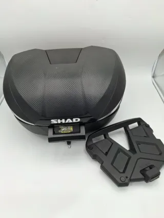 Baúl de moto SHAD SH39 con acabado en carbono. En perfecto estado, pequeños roces del uso. - Capacidad para un casco integral y un jet o dos jet. - Diseño moderno y elegante. - Se entrega con todos los accesorios para su instalación en la moto. - Superficie con textura de fibra de carbono. - Detalles en color negro brillante. - Tal cual se ve en las fotos, bien conservado.