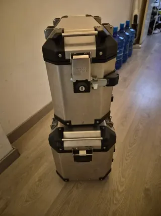 Baúl Givi Trekker Outback de 58 litros en color negro, aluminio, en perfecto estado. - Capacidad: 58 litros. 2 cascos integrales. - Color: Negro. - Modelo: Trekker Outback. - Incluye: respaldo de acompañante y red interior. En perfecto estado. Se vende por cambio de moto/modelo.
