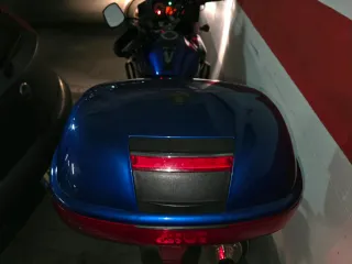 Baúl Givi de 46 litros con sistema Monokey. ✅️lo blanco que se ve en la imagen, es reflejo de la luz el flash del movil - Capacidad de 46L. - Sistema de anclaje Monokey. - Color azul brillante. -original de Suzuki Vstrom 650 -tiene sus 2 llaves -esta como nuevo a pesar de los años, tiene sus dos llaves. Estado fisico 9/10, uno que otro roce o arañazo.
