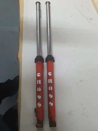 Amortiguadores delanteros para Derbi Diablo C4 y C7. Son de color rojo con detalles blancos. - Color: Rojo - Marca: Derbi - Modelo: Diablo C4 y C7