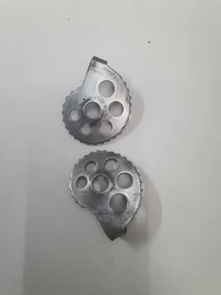 Set de cuatro uñeros metálicos para Renault 8 o R8. - Diseño rectangular con superficie texturizada. - Cada pieza cuenta con un orificio central. - Incorporan un sistema de sujeción en forma de gancho en la parte inferior. Para recoger en mano ahora mismo están en Madrid. Renault competición, vintage, Gordini, ts.