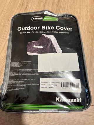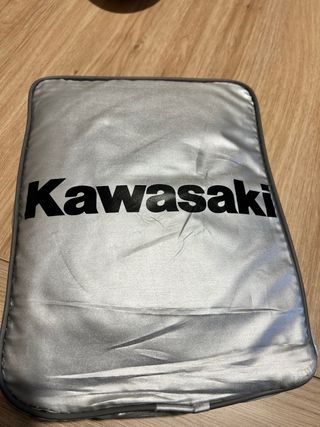 Funda original para moto, marca Kawasaki, diseñada para proteger tu vehículo de la intemperie. - Material impermeable. - Goma inferior ajustable y registro para el candado. - Diseño en colores negro y plata. Cualquier duda atiendo whatsaap 622.623.719