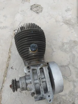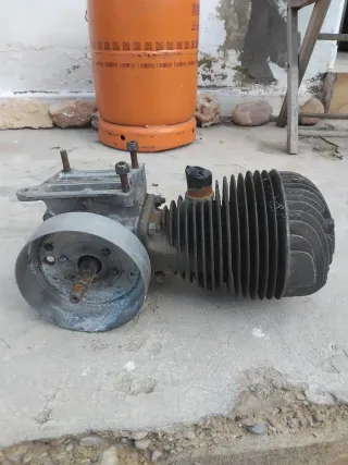 Se vende motor antiguo, ideal para coleccionistas o proyectos. Creo que era un retovator - Pieza metálica con aletas de refrigeración. - Incluye volante y eje. - Aspecto rústico y vintage.