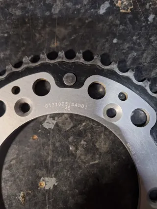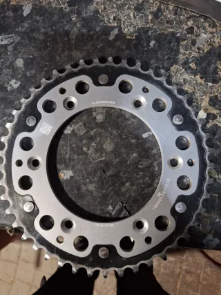 Corona mixta de 45 dientes de la marca Supersprox. Solo dos salidas esta prácticamente nuevo. Original - Fabricada en la UE. - Grabado con número de serie B131095104501. Plato cadena piñon husqvarna te gas gas ec tbi tpi exc