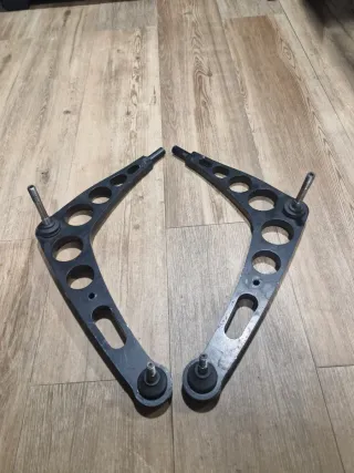 Se venden dos brazos de angulo de giro para BMW E36. Piezas metálicas con diseño calado. Kit completo menos los silentblock de la pirueta.