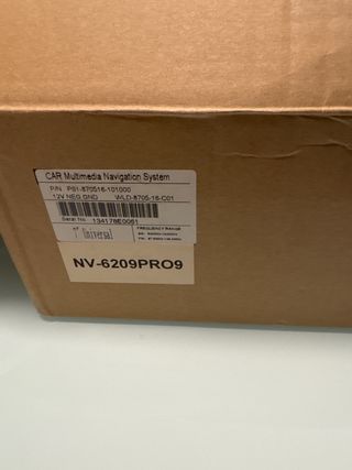 Sistema de navegación multimedia para coche. - Pantalla de 7 pulgadas. - Modelo: NV-6209PRO9. - Voltaje: 12V NEG GND. - Número de serie: 134178E0061.