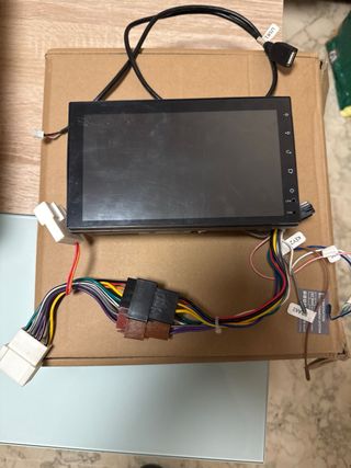 Sistema de radio para coche con compatibilidad con CarPlay y Android Auto. - Incluye pantalla. - Soporte de montaje. - Cableado y cargador para coche.