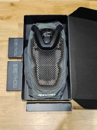 Sistema de airbag Alpinestars Tech-Air 5 para motorista. Super bien cuidado, impecable y con su caja original con instrucciones, cargador original, etc... Es el airbag más seguro con además espaldera incorporada. Ideal para uso en calle, off road o circuito. Yo lo he usado principalmente para viajes pero ahora he tenido un bebé y ya no le doy uso. Solo tiene 126h de uso que corresponden a tres viajes que he realizado, cada uno de una semana aprox. 7 días x 6 horas cada día: 42h a la semana 3 semanas = 126h Impecable, de estreno. Por favor no hacer ofertas sin sentido porque no las acepto. #moto