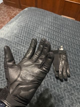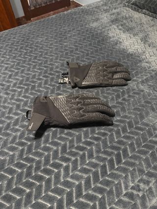 Par de guantes de la marca Revit en color negro. Diseño moderno y funcional. - Talla L - Material textil con detalles texturizados. - Cierre de velcro en la muñeca. - Tirador para facilitar su colocación. - Me los he puesto 2 veces